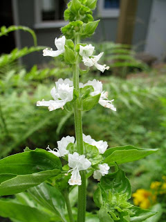 And the sweet basil, although it's now flowering, still has some fragrant leaves to add to my vegetable casserole.